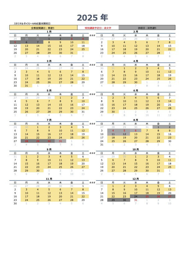 土曜日クラスは大変混み合うため、予約制とさせていただきます。