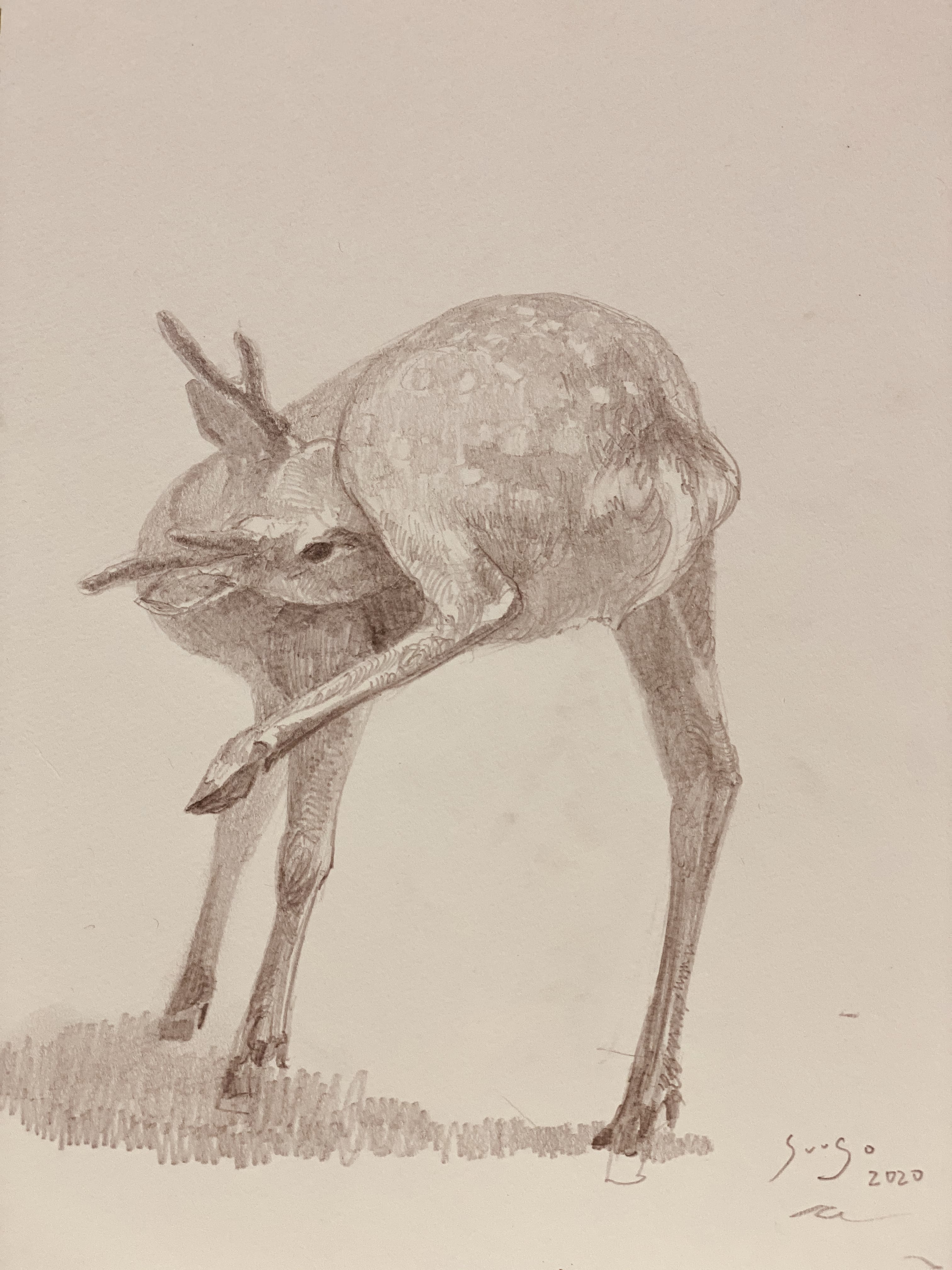 つまり観た物の特徴をディフォルメすることで、インパクトある絵が描けます。それを意図的に行うためには、基本を理解していなければできません。お笑いタレントが面白いことを言えるのは、あたりまえの事、常識を心得ているからズレた冗談が言えるのと一緒です。