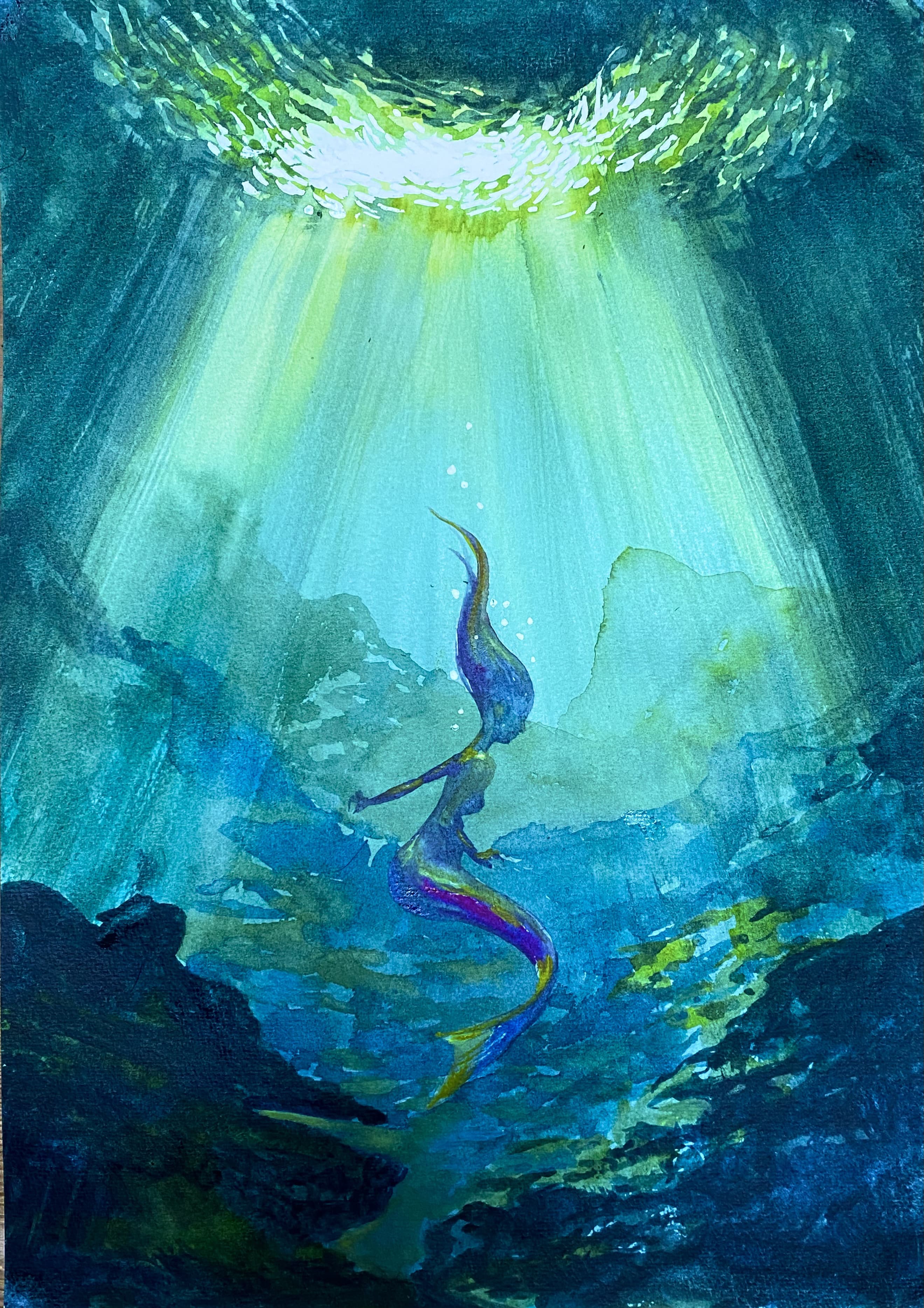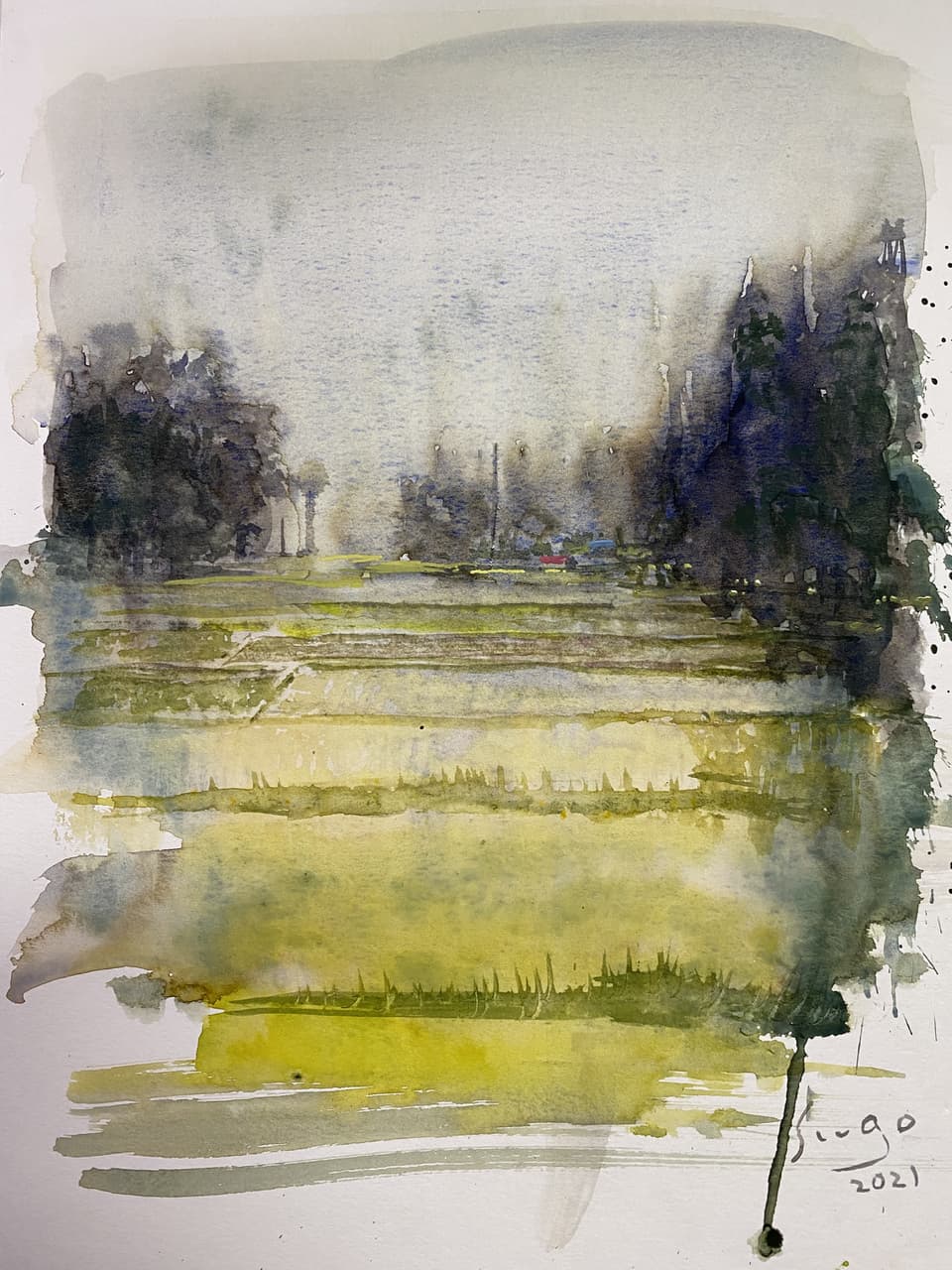 透明感や瑞々しさ、色の広がりは水彩画特有の美しさを備えています。ただ、色をのせるだけではもったい画材だと思います。混色や水の量、にじみ、筆のタッチでの表現で絵画的で魅力的な画面が表れます。本校では、それら技術や知識を指導しており、あらゆる主題に応用することが可能です。