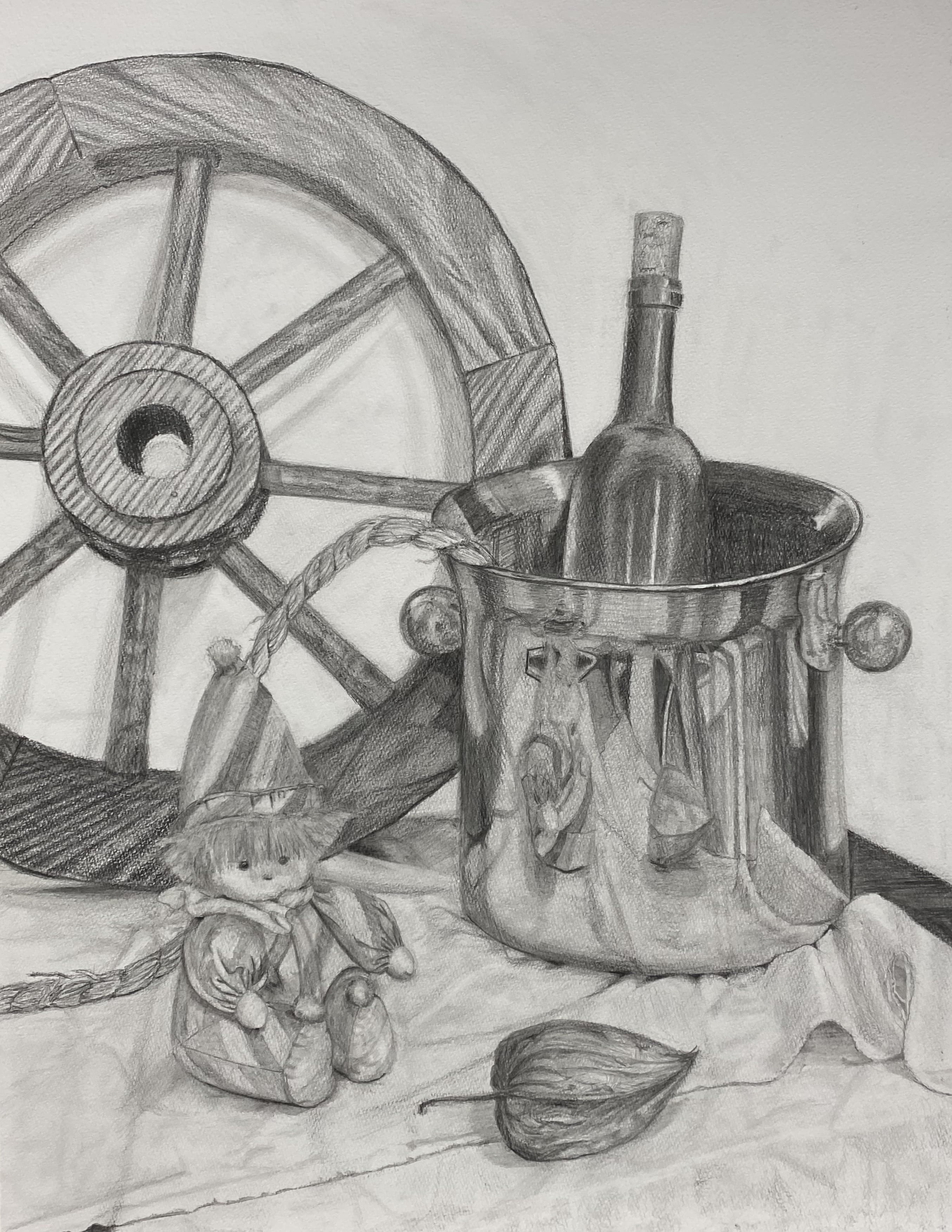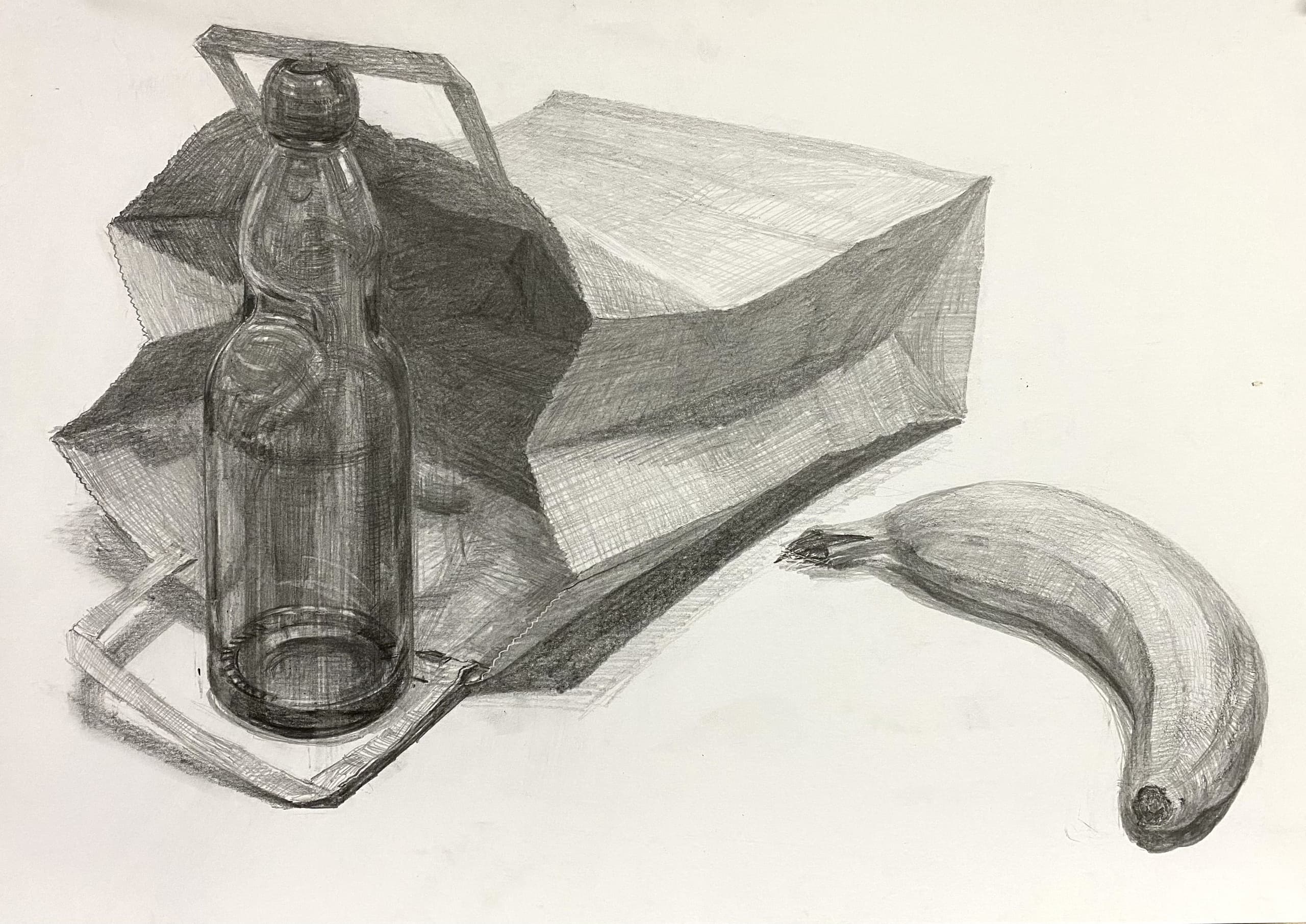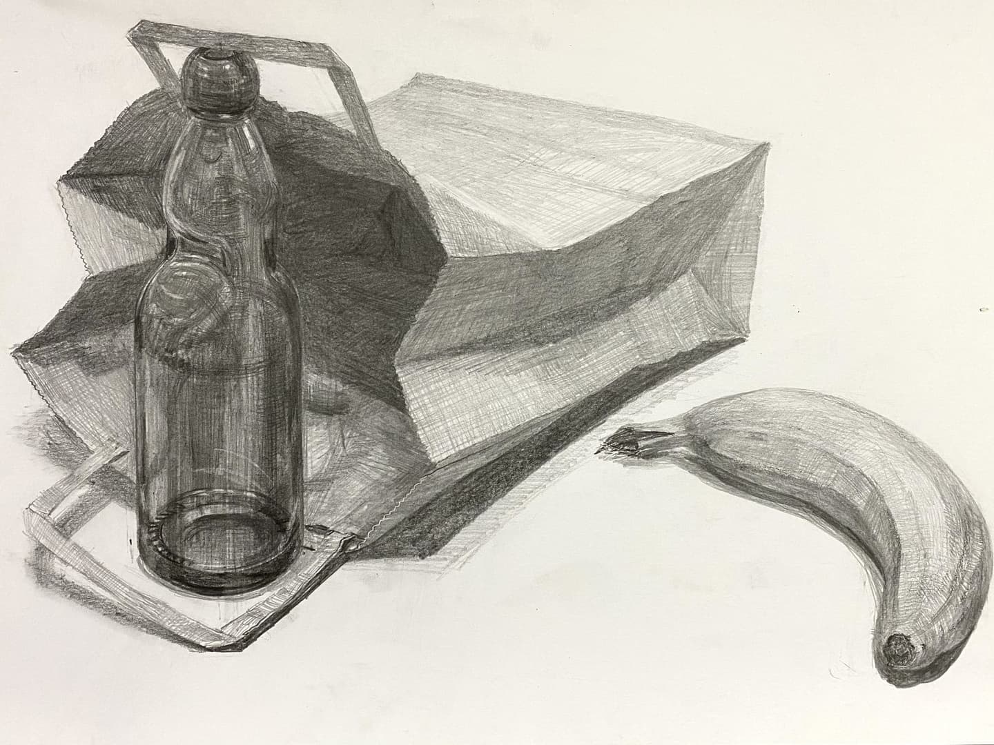 鉛筆デッサンや木炭デッサンを用いて、目の前にある対象を、形・明度・質感、さらには構図・空間などを捉えて描き、感覚を磨いていきます。
