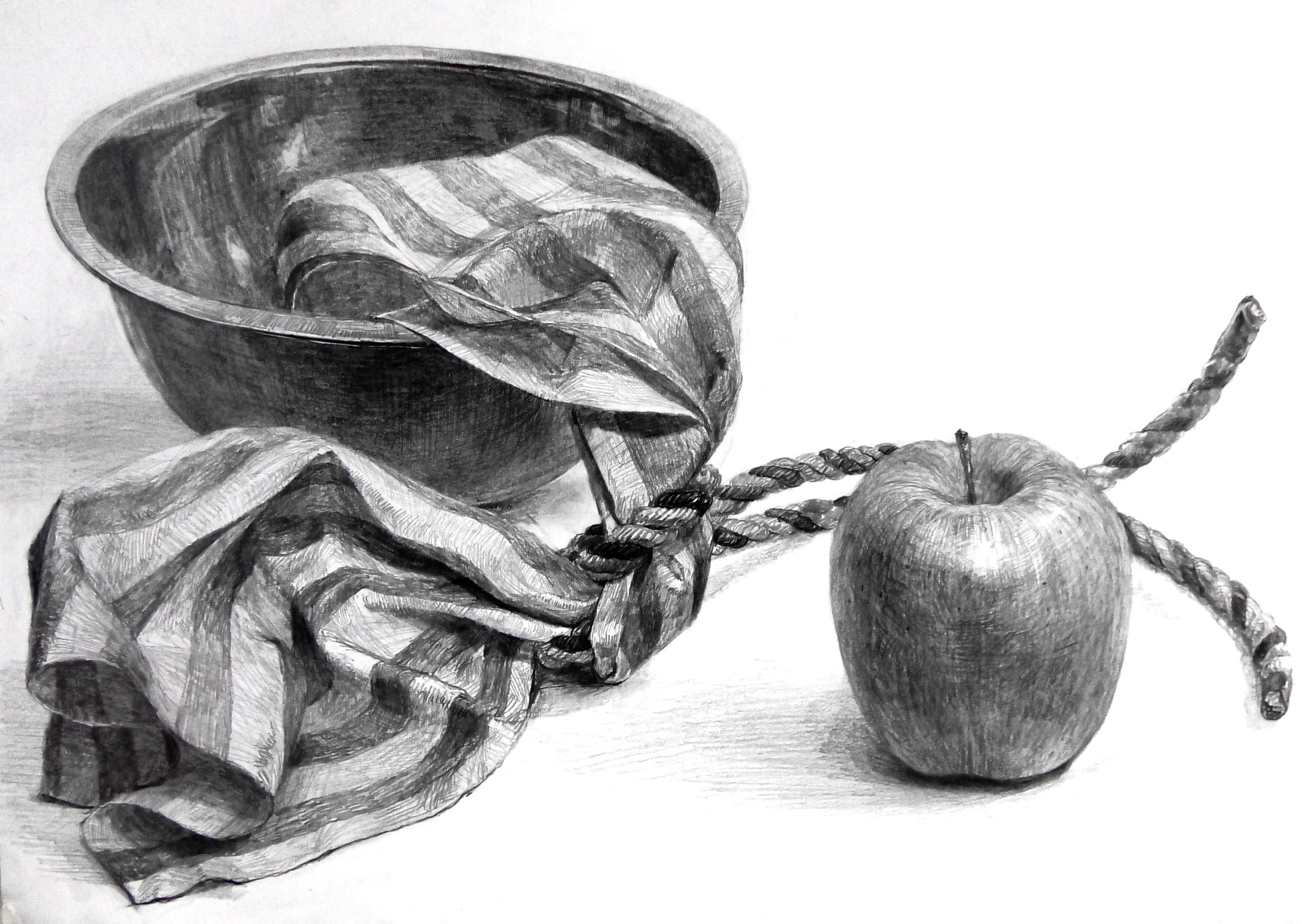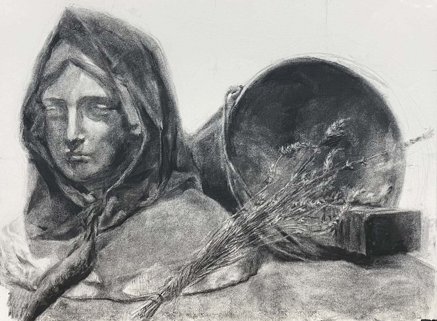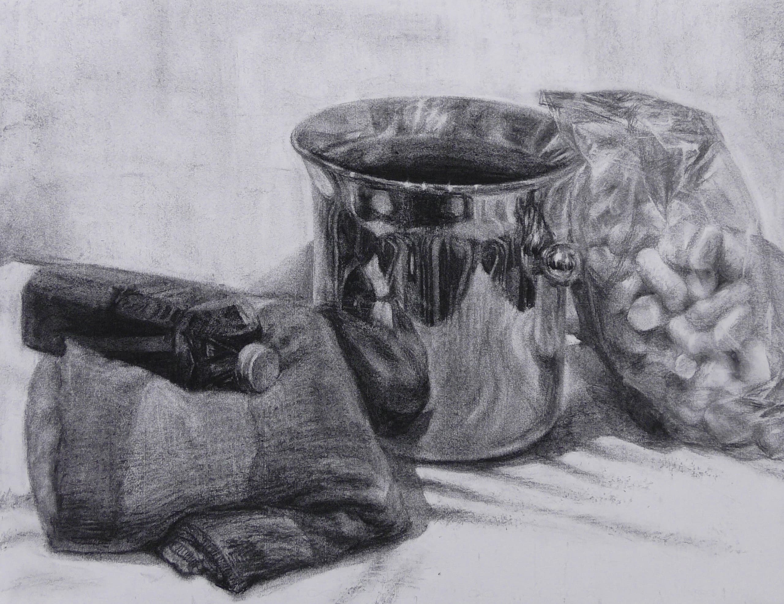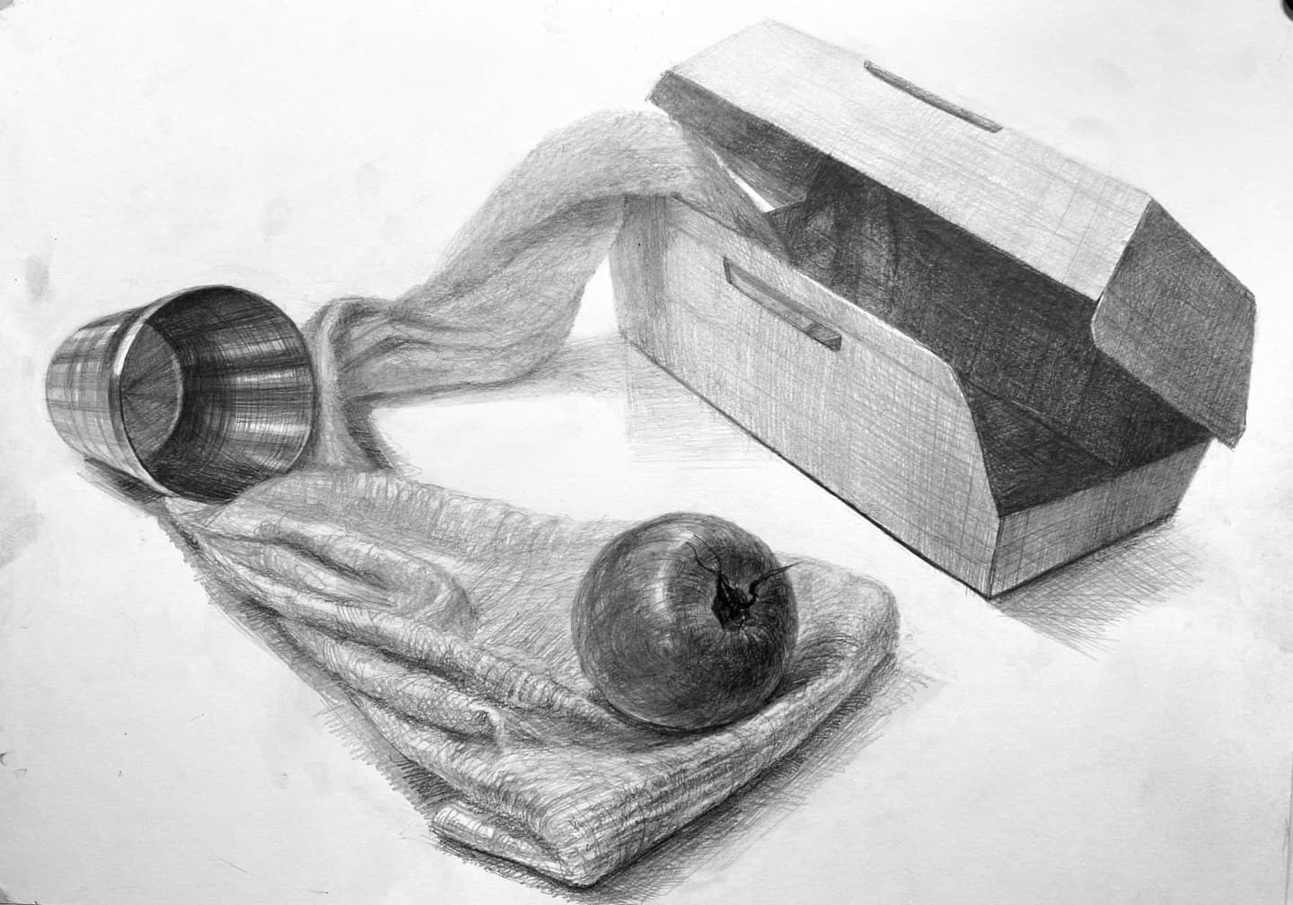 自分の席は一歩離れて作品を見る空間がありませんでした。あと、デッサン用具はかなり規定が厳しく、ほぼ鉛筆消しゴム練り消しゴムだけだと思ってください。
