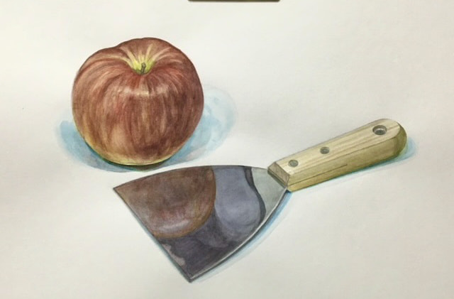 デッサン同様、初めはモチーフを見て描きます。水彩画は塗り重ねて美しい色を作り出しますので視覚的に感じた色をどんどん画面に投影します。また、特殊技法を覚えることで、表現の幅を増やします。